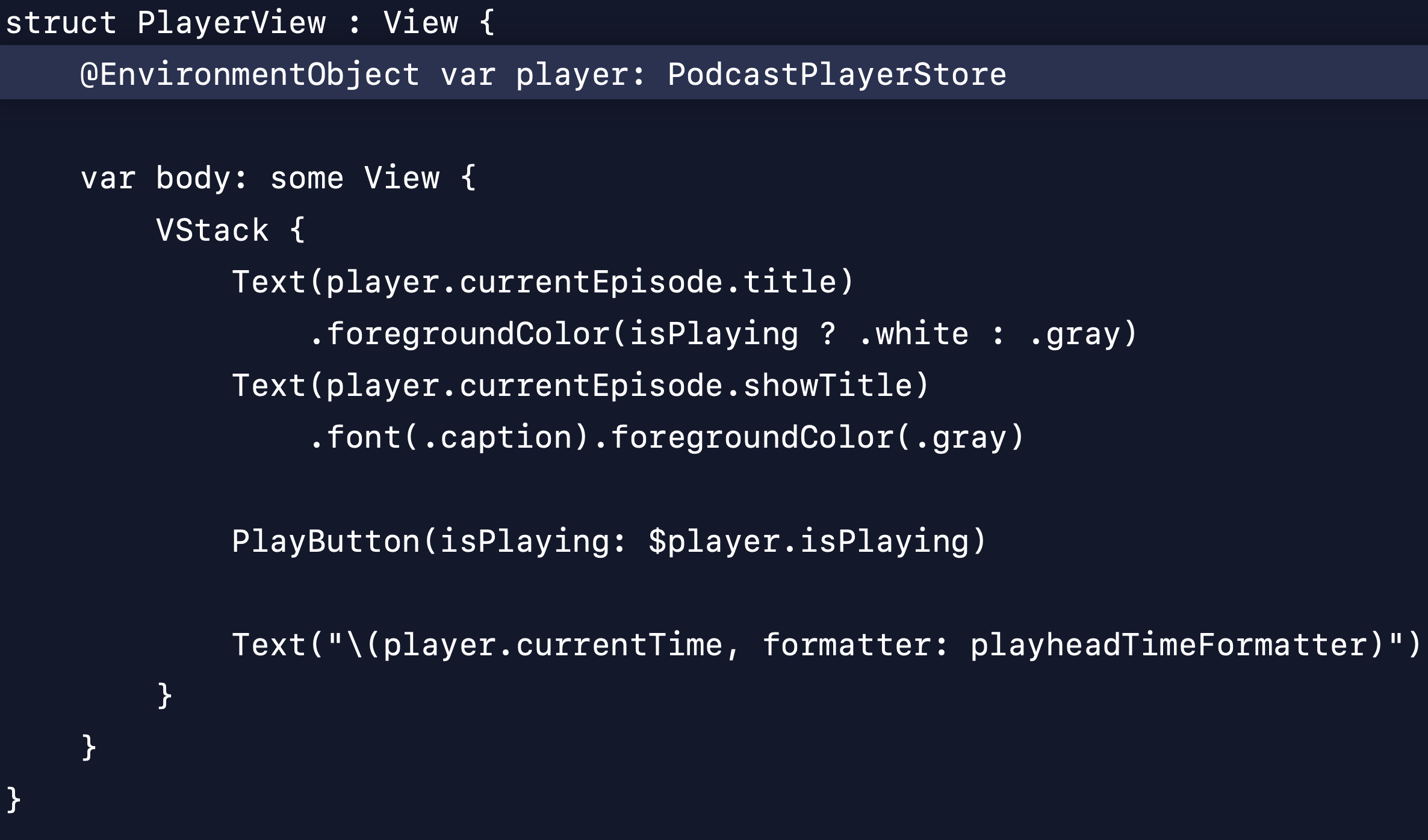 @ObservedObject var model: PodcastPlayerStore