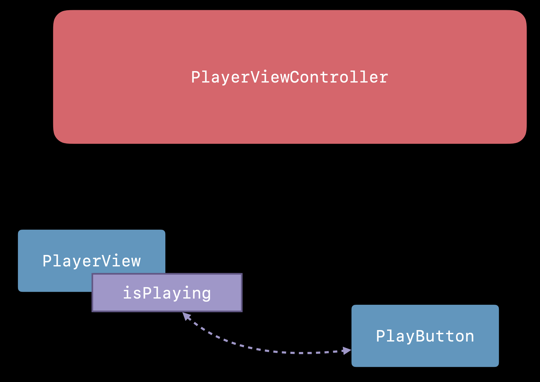 위와 같은 구조에서 isPlaying 의 값이 true로 변하면 (유저가 재생 버튼을 탭하면) 어떻게 될까?