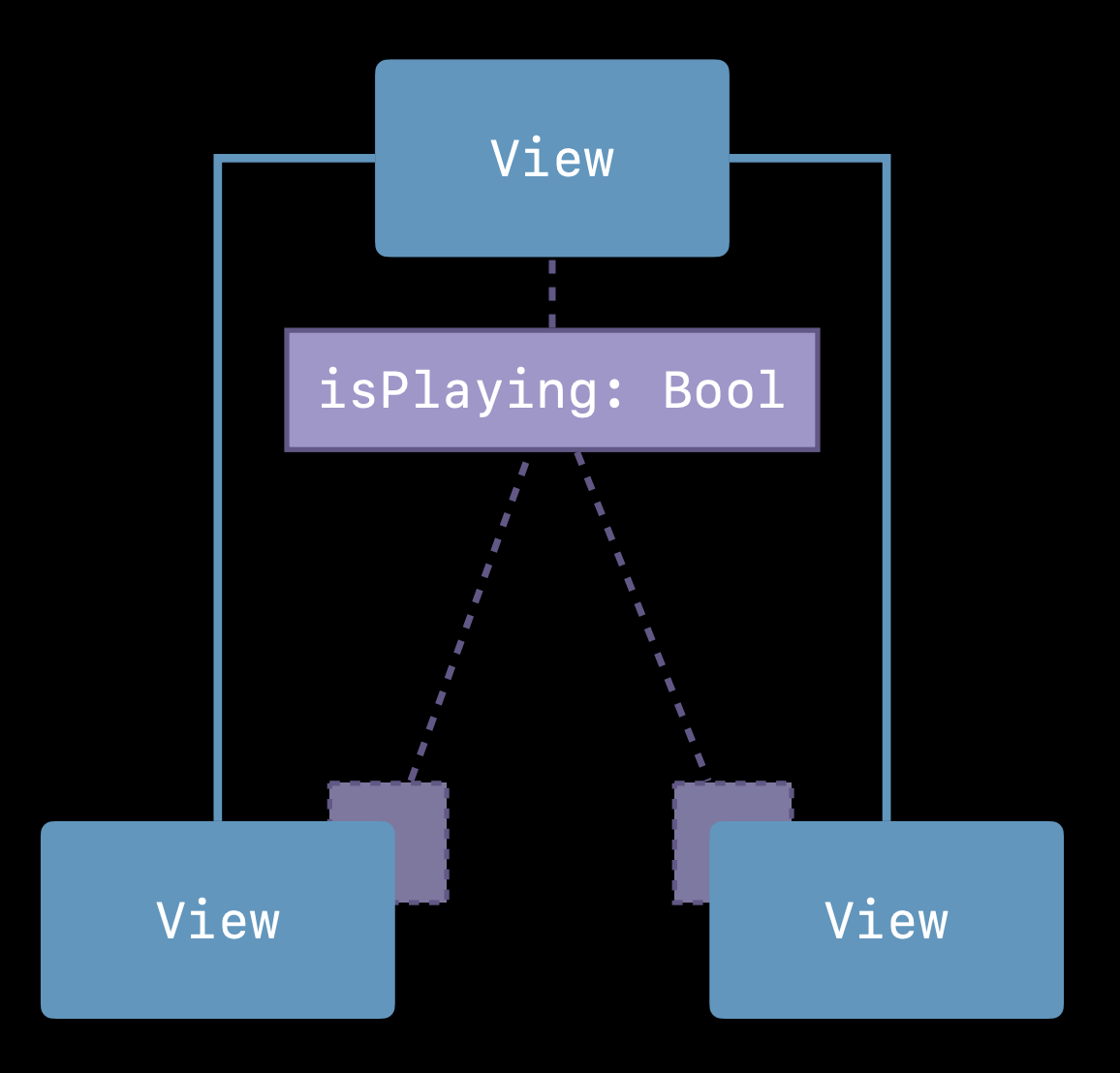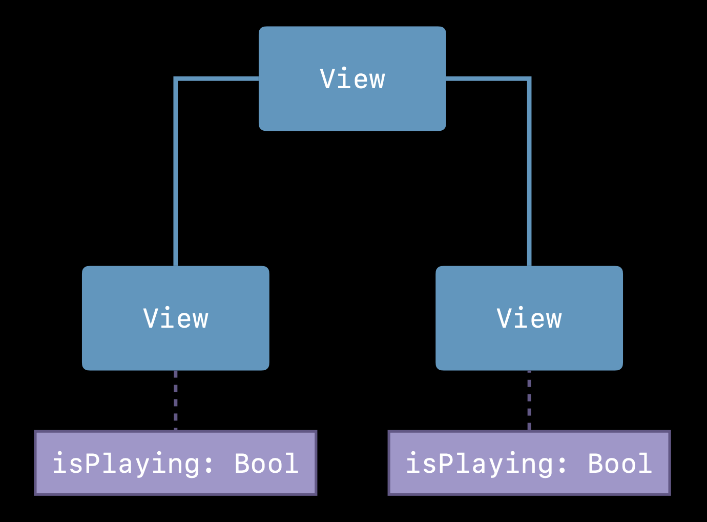 중요하니까 한 번 더 강조. PlayButton 은 isPlaying 값의 복사본을 가지는 것이 아닌, 단순히 SuperView PlayerView 의 isPlaying State를 참조하기만 하는 것이다. 따라서 프로퍼티 간의 싱크를 개발자가 직접 신경쓸 필요는 없다.