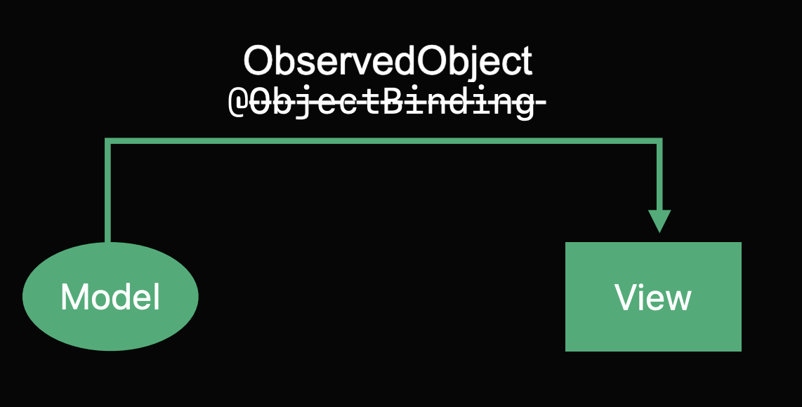 뷰는 @ObservedObject 라는 Property Wrapper를 사용해 ObservableObject 모델에 의존할 수 있다. Automatic dependency tracking(모델이 변경될 때 뷰가 알아서 변경됨) 관점에서만 보면 앞서 다루었던 @State 와 다르지 않다.